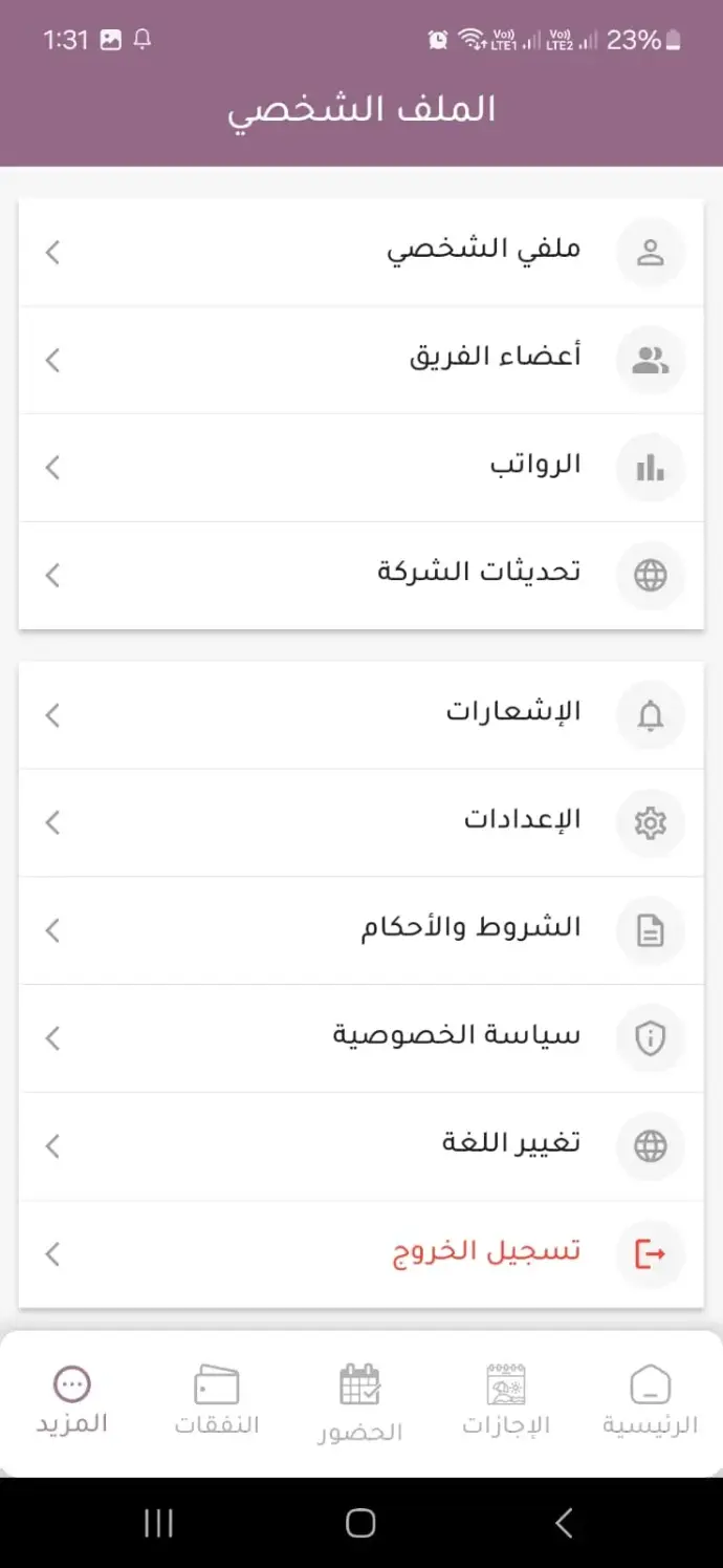 من خلال شاشة الملف الشخصي، يستطيع كل موظف الوصول إلى بياناته الوظيفية الكاملة، الاطلاع على الرواتب الإشعارات والسياسات وتحديث ملفه بكل سهولة.